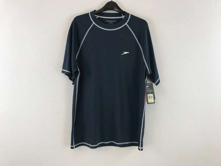 LOT 046R - Men's Speedo Short Sleeve Swim Shirt, Size M - New Navy