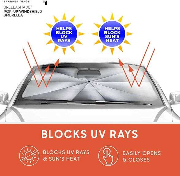 LOT 123U - Sharper Image BrellaShade Pop-Up Windshield Umbrella - Protect Car Interior, Reflects UV Rays/Heat