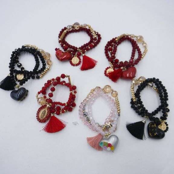 LOT 115U - 6 Packs Of 3: Multicolor Beaded Stretch Bracelets