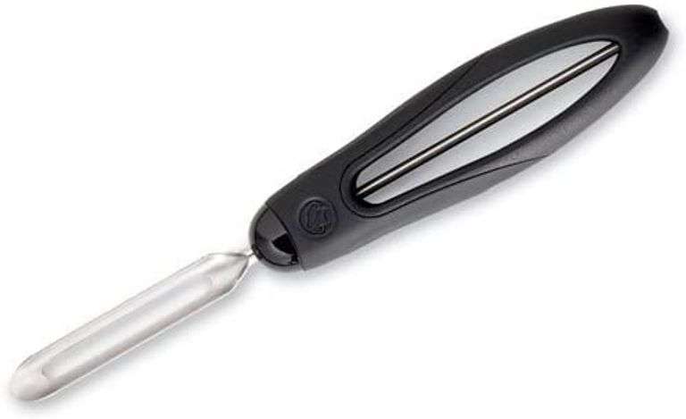 LOT 155U - Pampered Chef #1071 Vegetable Peeler, Stainless Steel Fruit Potato Peeler, Easy Grip Handles, 7-1/4 Inch, Black
