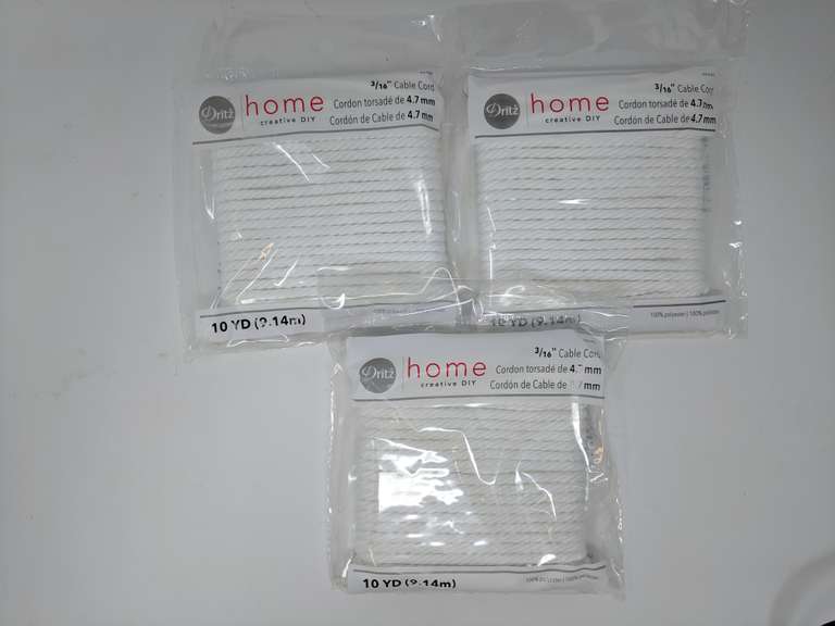 LOT 657R - Lot of 3 Dritz Cable Cord - White 10yds
