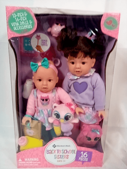 LOT 0873 - Member's Mark Sweet Sisters Pajama Party 13" and 16" Dolls Brunette Brown Eyes