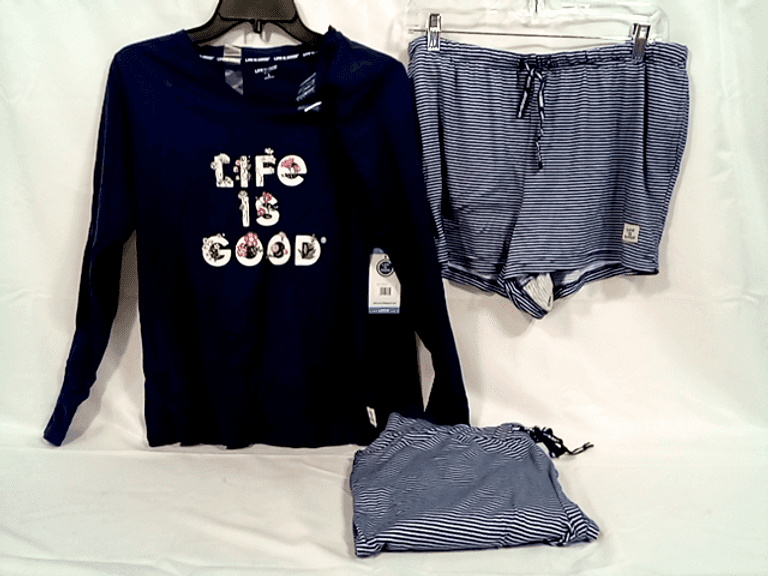 LOT 1280 - Life Is Good, Women's Long Sleeve, Short And Pant, 3 Piece PJ Set, Navy Stripe