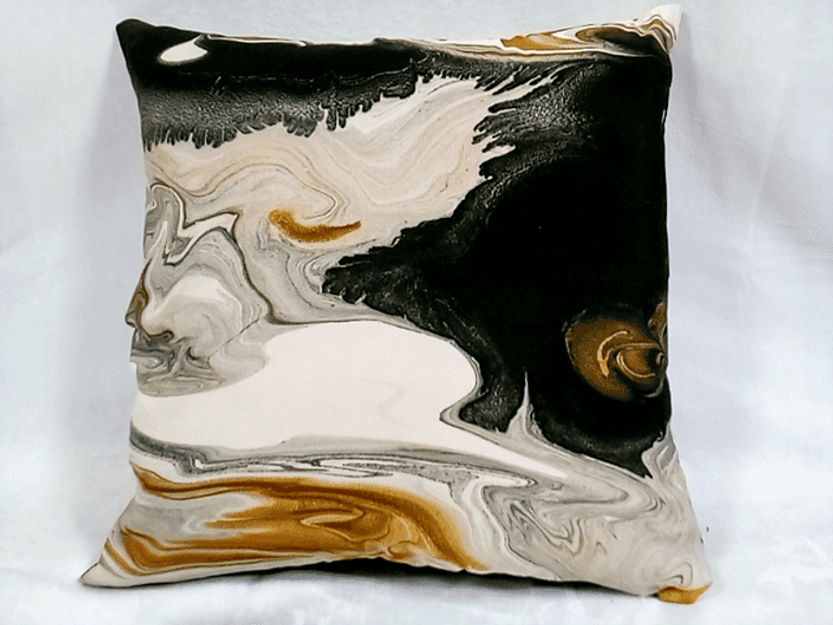 LOT 2828 - Marble Ink Square Throw Pillow, 16"x15", Black, Gold, White