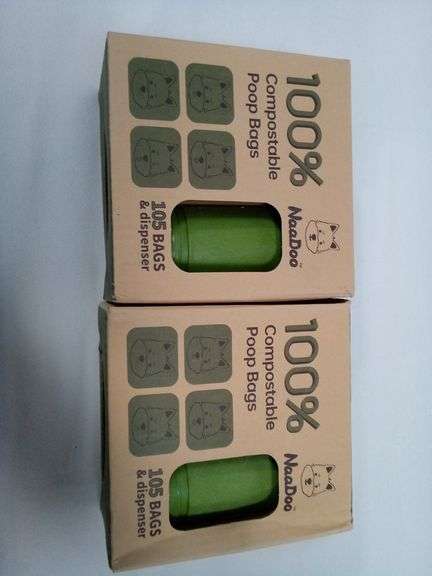 LOT 1336C - NaaDoo, Compostable Poop Bags & Dispenser, 105 Count, Lot Of 2, Green