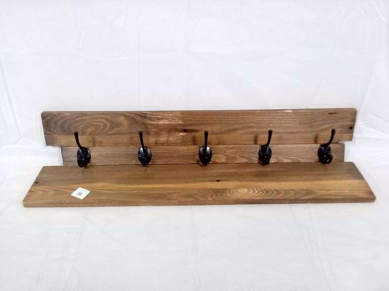 LOT 4584 - Wall Mounted Wooden Rustic Coat & Hat Rack Shelf
