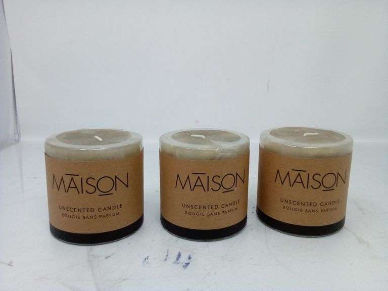 LOT 4065 - Lot Of 3 Maison, Unscented Candle, Bougie Sans Parfum, Beige