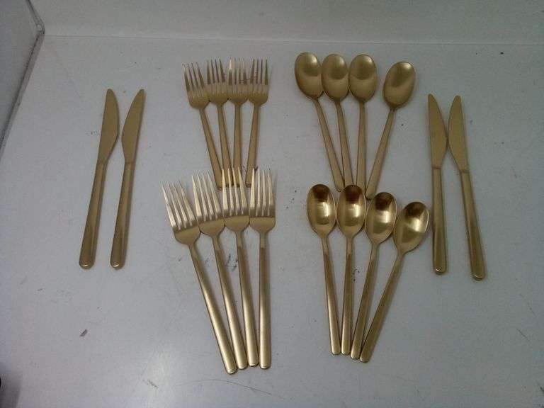 LOT 2561 - Set of 20 Member's Marks Stainless Steel Flatware – Gold MM 18-10