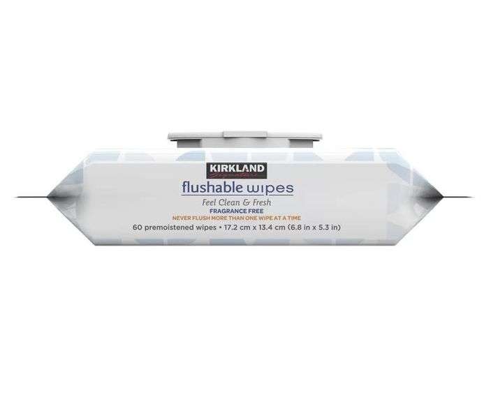 LOT 5722 - Kirkland, Premoistened Flushable Wipes, 7" x 5.25", 64 Pack