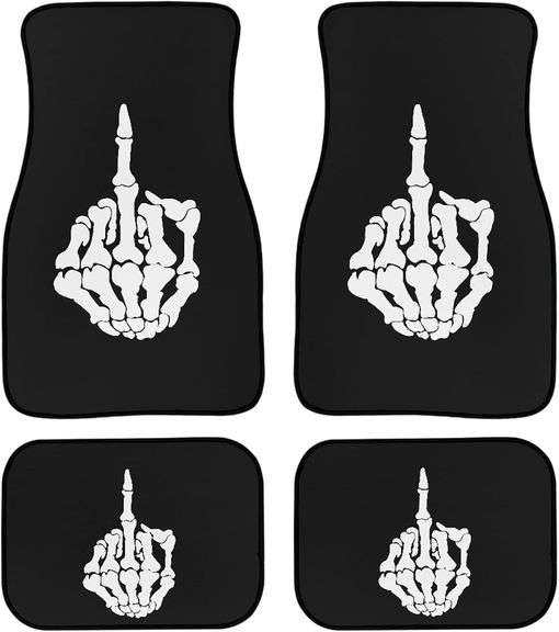LOT 2352AD1 - Skull Skeleton Heavy Duty Rubber Polyester Car Floor Mats – Black One Size GP