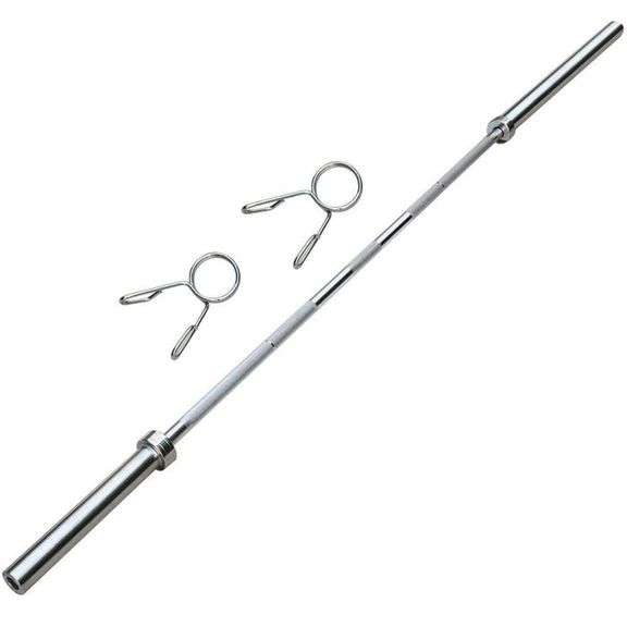 LOT 6388H - Olympic Barbell Weight Bar with Spring Collar Clips – Chrome 86"L