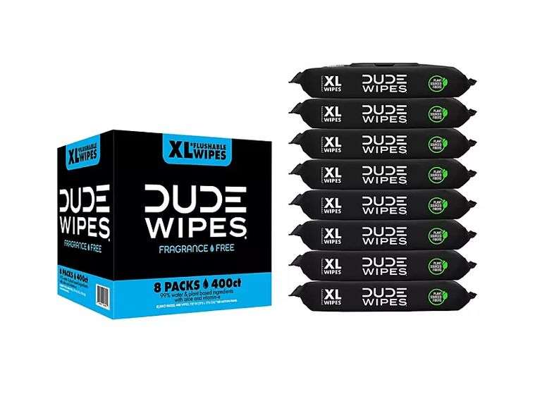 LOT 4812 - Dude Wipes Fragrance Free XL Flushable Wipes – 7"x7" 400 Total Count