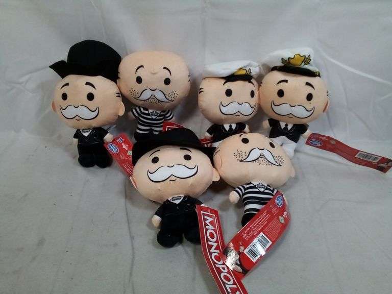 LOT 4610 - Assortment of 6 Mr. Monopoly Plush Toys – 7-8"