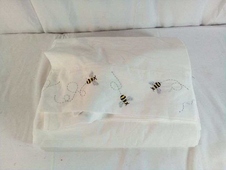 LOT 2391J - Bees Embroidered White Bed Sheets – 100% Cotton