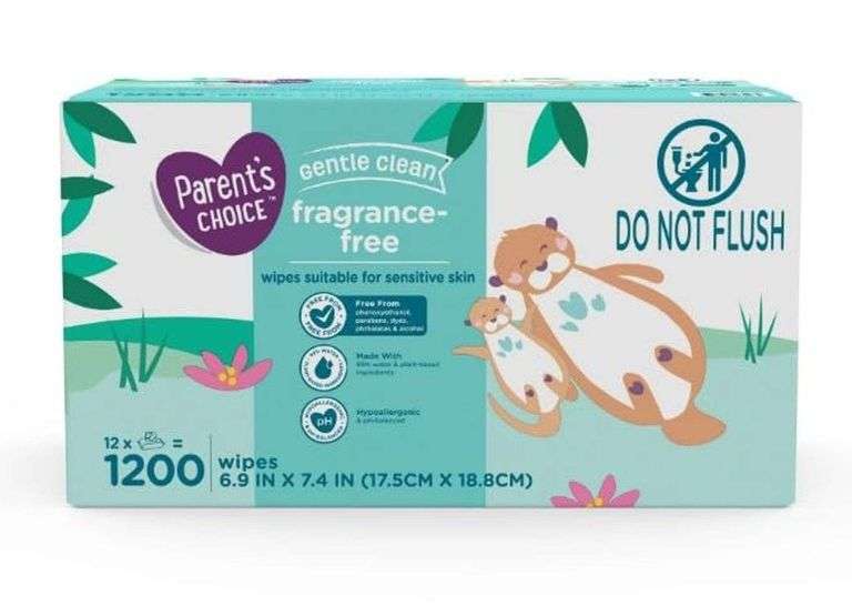 LOT 2611K - Parent's Choice Gentle Clean Fragrance-Free Baby Wipes – 6.9"x7.4" 1200 Wipes