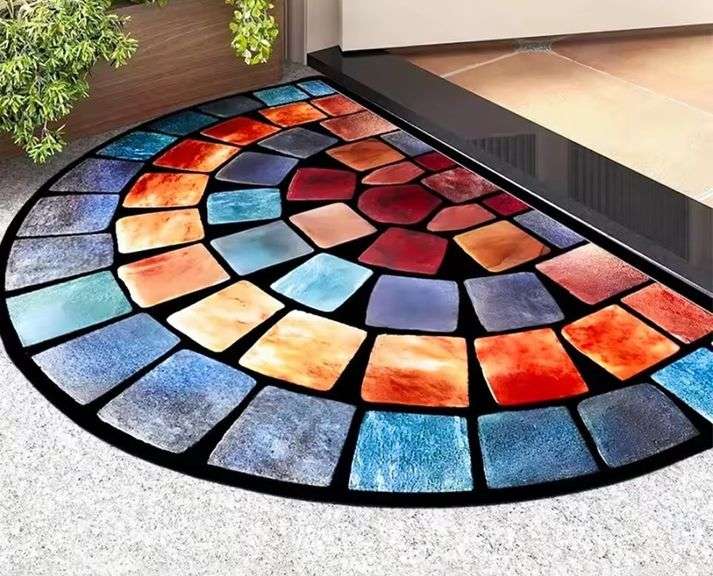 LOT 6339G - Geometric Pebble Stereoscopic Semicircular Doormat – 23.10" x 15.25"