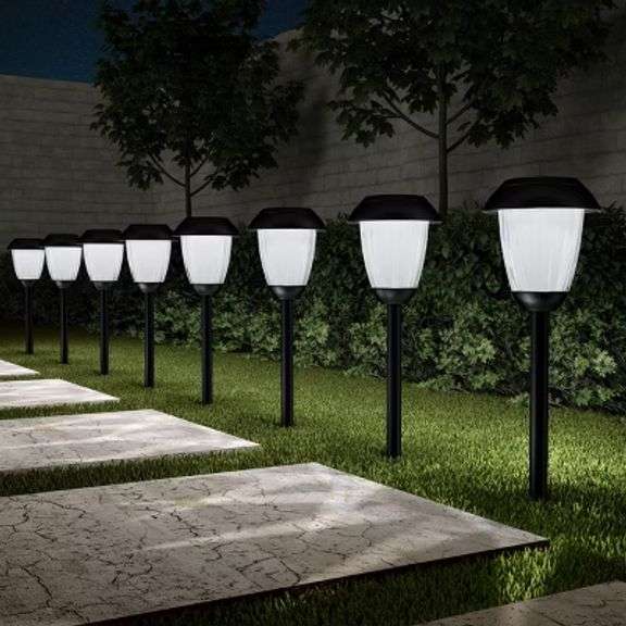 LOT 1911M - Set of 6 Outdoor Solar Landscape Lights, Plastic, LED