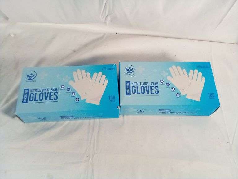 LOT 2167K - Lot of 2 Vimartex Powder Free Nitrile Vinyl Exam Gloves – Clear 100 Pairs ea.