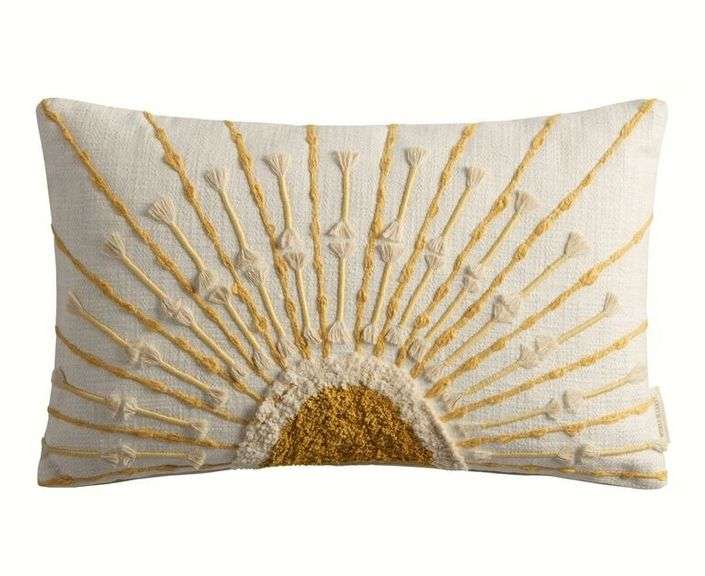 LOT 1723N - World Market Tufted Embellished Sunrise Lumbar Throw Pillow – 14" x 22"