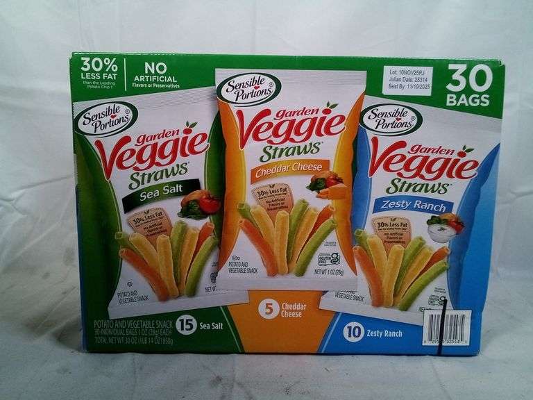 LOT 1308K - Sensible Portions Garden Veggie Straws Potato & Vegetable Snacks – 1 oz 30 Bags