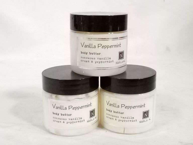 LOT 3344Z - Nabila K Sensuous Vanilla Cream & Peppermint Body Butter – 2 oz ea. 3 Count