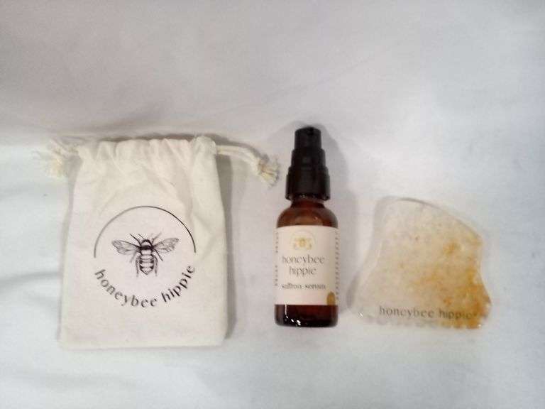 LOT 3341N - Honeybee Hippie Saffron Serum, Gua Sha Tool & Drawstring Bag Set