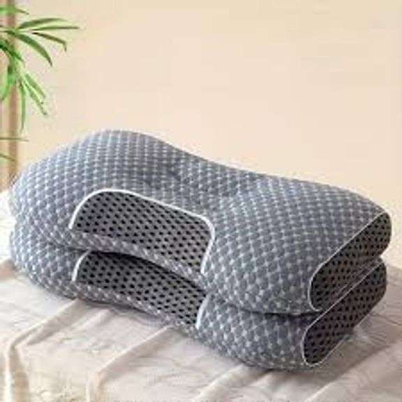 LOT 1885M - Lot of 2 Good Sleep 9h Pillows, Ergonomic Neck Support, Grey, Queen Size 19"x29"