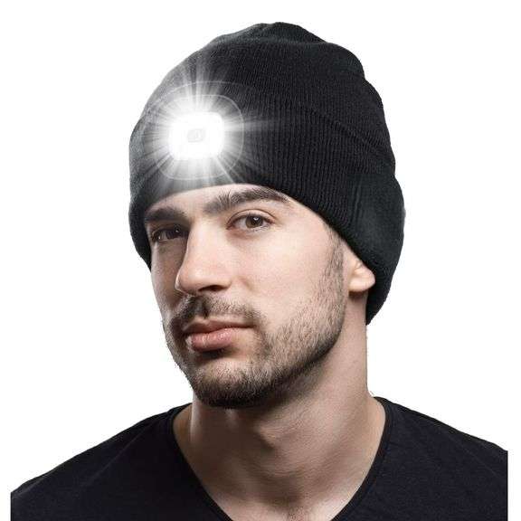 LOT 1941M - Lot of 3 Beanie Cap with LED Light, Rechargeable, Acrylic, Black, Adult Large
