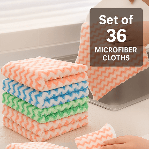 LOT 1917M - Pack of 36 Microfiber Cloths, Chevron pattern, Soft, 10"x10" blue, green, pink