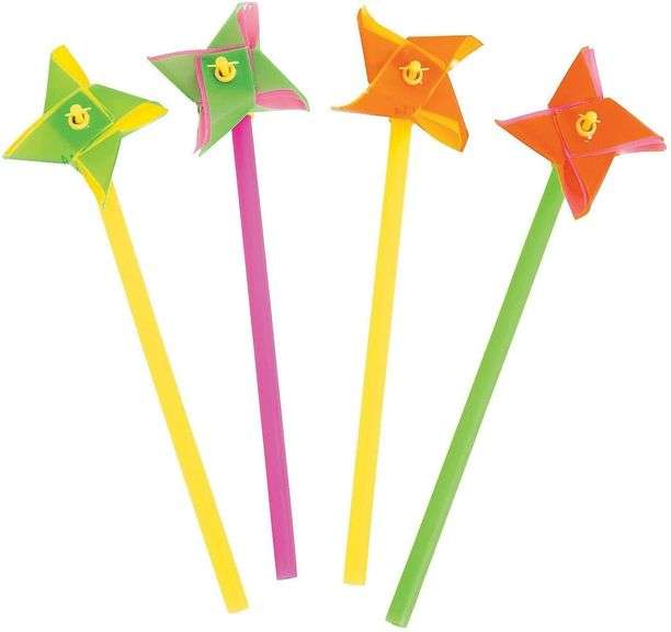 LOT 1882HM - 360 Pinwheels - Fun Express Plastic Neon Two-Tone 7" Pinwheels