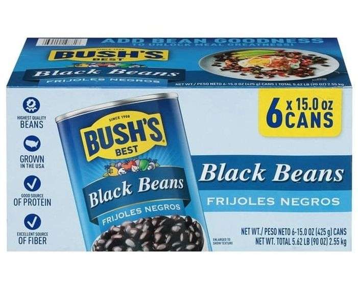 LOT 2315T - Lot of 6 Bush's Best Black Beans – 15 oz ea.