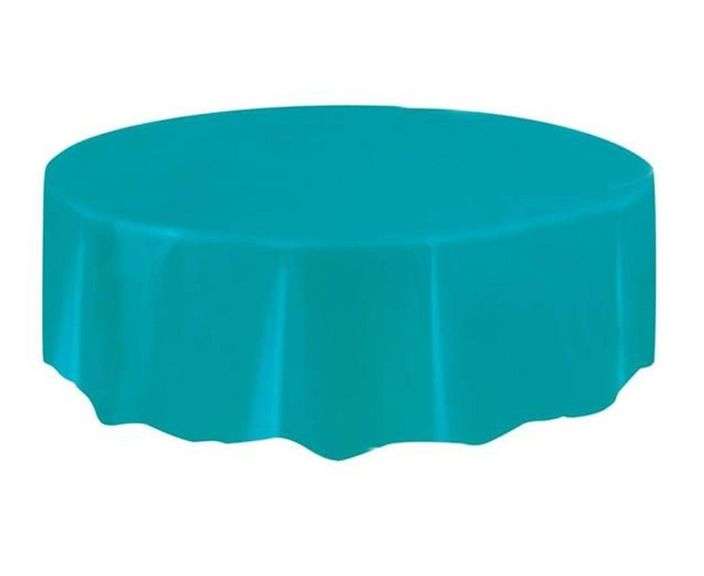 LOT 1416Y - (3pcs) Teal Round Plastic Tablecover 84 Inches Reuseable Water/proof Abl