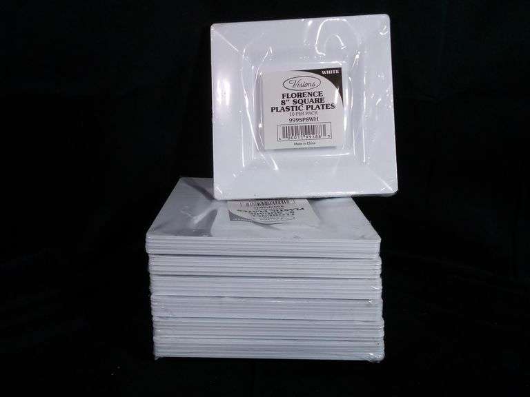 LOT 3754G - Lot of 7 Visions Florence 8" Square Plastic Plates – White 10/Pack 999SP8WH