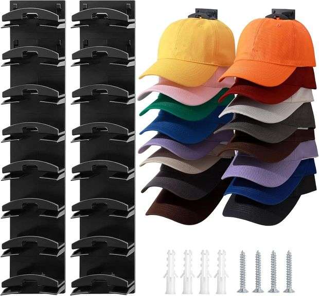 LOT 1983M - 2 Pack Hat Organizer, Adhesive Wall Mounted, Hold up to 16 Hats, Black