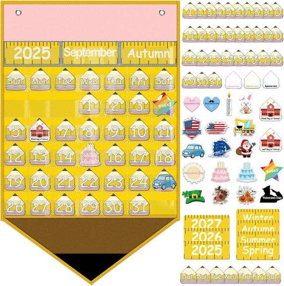 Classroom Learning Circle Time Calendar Teacher Daily Schedule Pocket Chart for Classroom Homeschool Preschool Office Supplies