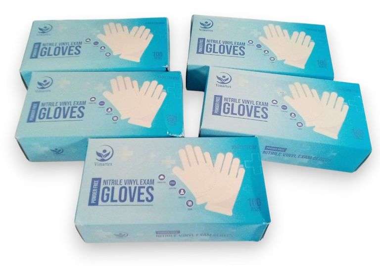 LOT 1054K - Lot of 5 Vimartex Powder Free Nitrile Vinyl Exam Gloves – Clear 100 Pairs ea.