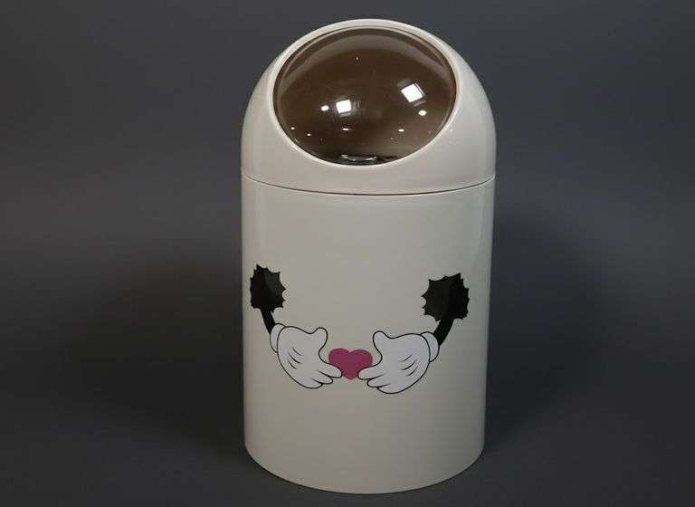 LOT 4466T - Cute Trash Bin with Window Cover & Container Inside – Beige/Black 9" Dia.
